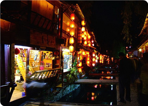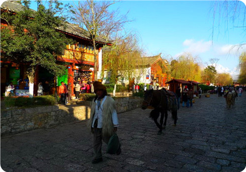 地處我國西南邊陲,位于云南省西北部地區(qū)?!←惤懦窃谀纤螘r(shí)期就初具規(guī)模,已有 八、九百年的歷史。自明朝時(shí),麗江古城稱“大研廂”,因其居麗江壩中心,四面青山環(huán)繞,一 片碧野之間綠水縈回,形似一塊碧玉大硯,故而得名。