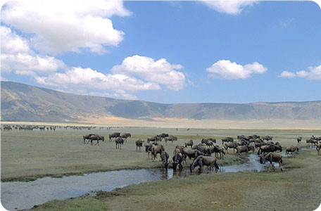 自然保護(hù)區(qū)位于坦桑尼亞中北部,1979年被聯(lián)合國教科文組織宣布為世界自然遺產(chǎn)。保護(hù)區(qū)的核心是世界聞名的恩戈羅戈羅火山口,有天然動物園及世界第八大奇景的美稱,火山口方圓250 平方公里,600米深,是完整的火山口,也是世界第二大的火山口,型如鑲嵌在東非大裂谷帶上的一只“大盆”。每當(dāng)春天來臨之際,成千上萬的火烈鳥地聚集在火山口底部的咸水湖上,宛如玫瑰色地薄紗,火烈鳥翩翩起舞,與火山口內(nèi)生長的各種花卉、植物互相映襯,使恩戈羅戈羅被譽(yù)為“非洲伊甸園”。