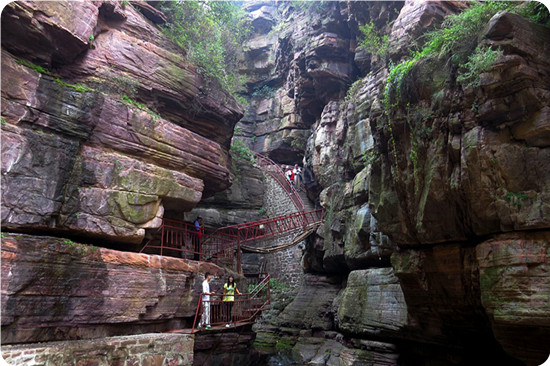 大自然的鬼斧神工,把這條峽谷雕鑿得景中有奇,奇中有景,出人意外,神秘莫測(cè)。 瀑布龍?zhí)都刃蹅延^,又揣急驚險(xiǎn),瀑布轟鳴,潭水急旋,峰崖陡峭,谷深路窄。登梯走橋時(shí)可從險(xiǎn)中觀景,游人追求險(xiǎn)中景,甘愿“鋌而走險(xiǎn)”身臨險(xiǎn)境,領(lǐng)略險(xiǎn)中景的妙趣,險(xiǎn)中景給游人增添了力量,大有不到真潭非好漢的感受。